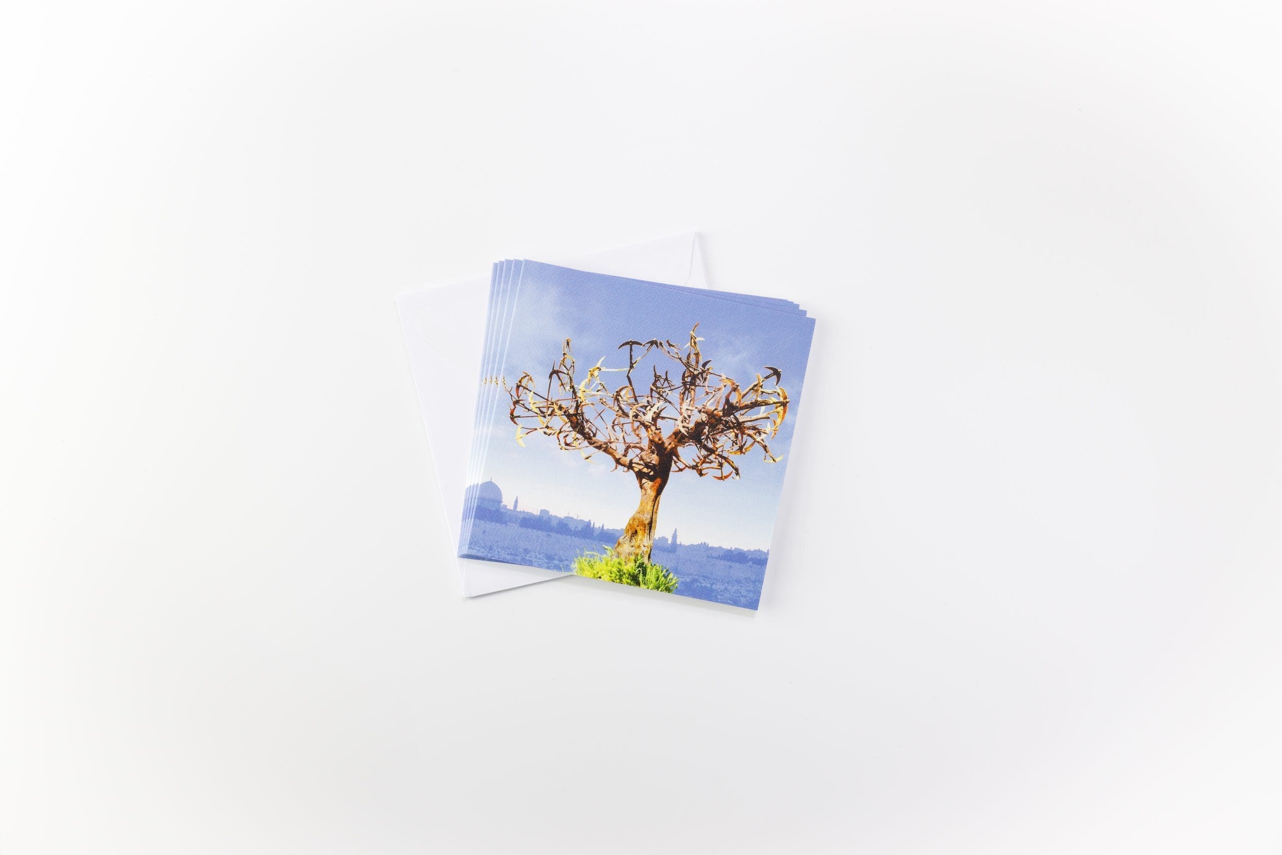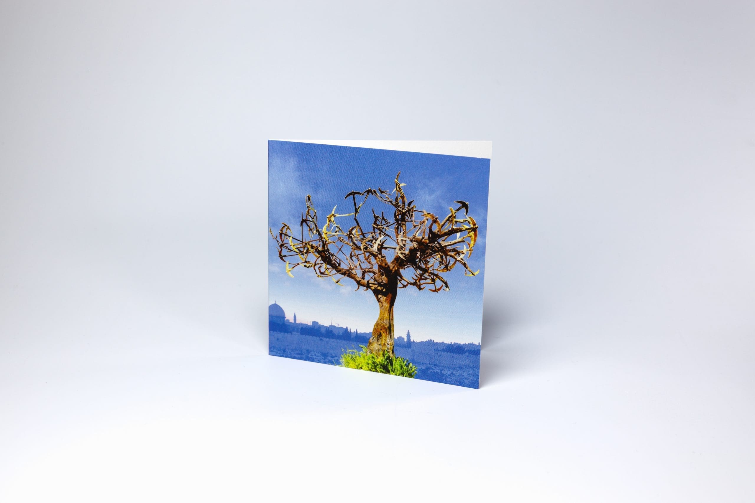 Pack of 5 cards featuring the Tree of Hope at our Muristan Clinic, blank inside for own message. 12.5 cm x 12. 5 cm