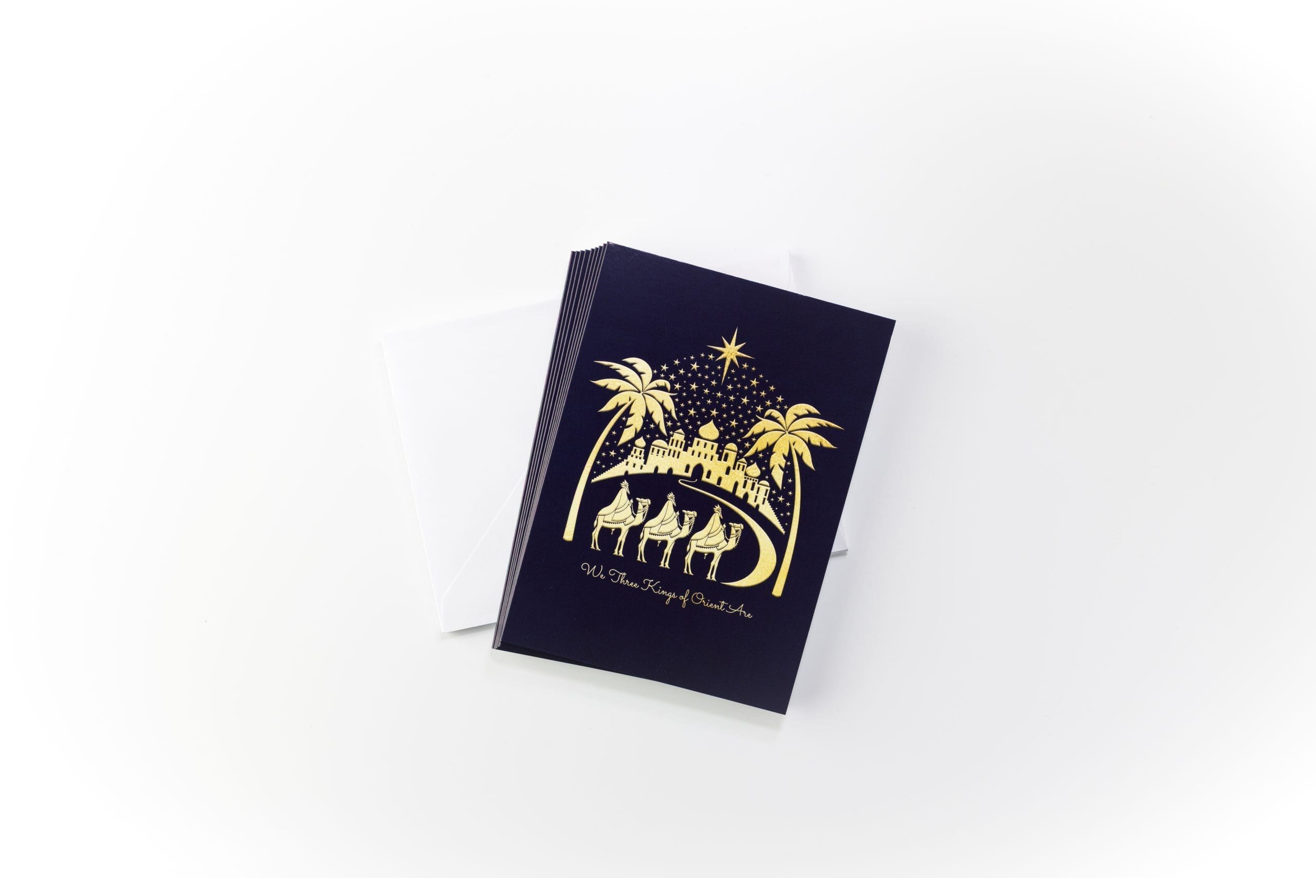 We Three Kings of Orient Are’ Christmas Cards – Pack of 10. Inside message: ‘Wishing you a Merry Christmas and a Happy New Year’